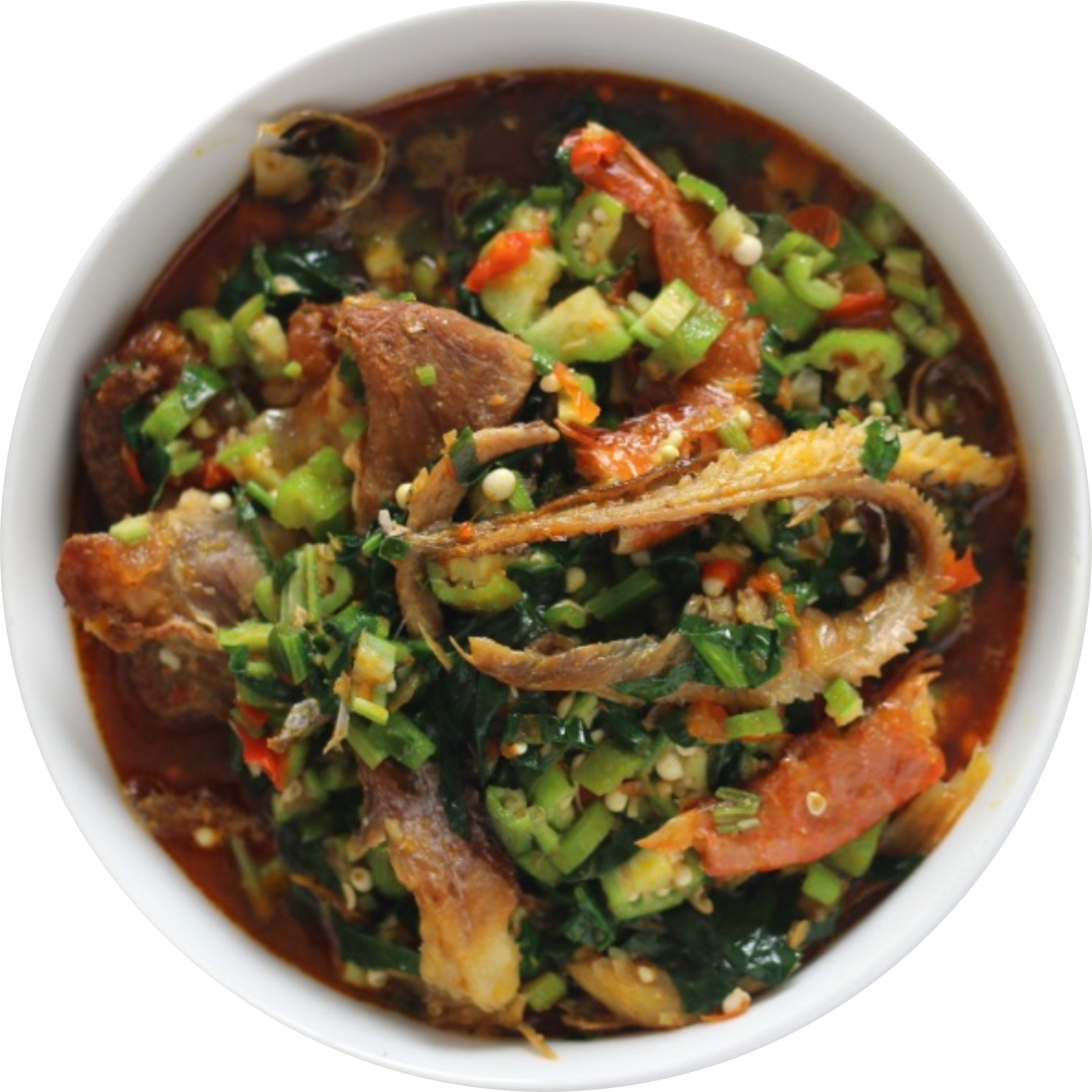 Okra soup (African okro soup) is made with okra vegetables cooked in a delicious mixture of palm oil, shrimp, goat meat, fish, and African spices and simmered to perfection!